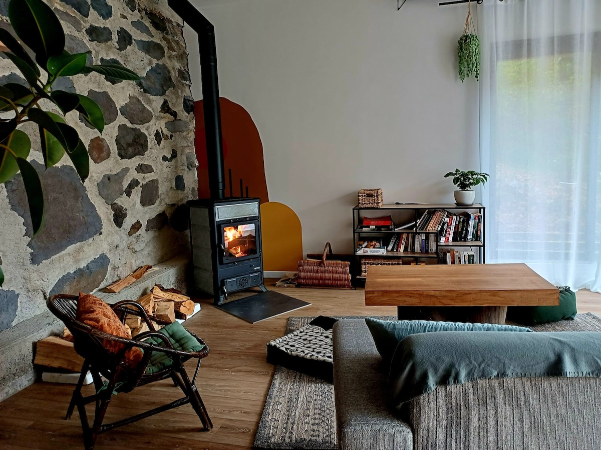 Наше незалежне помешкання від нашого традиційного будинку виноробів розташоване в 5 хвилинах їзди від Zénith d 'Auvergne і виходу 4 з A75(Париж-Монпельє), під плато Гергові, на висотах селища Ла-Рош-Бланш. Під печерними скелями ви зможете насолодитися спокійним перебуванням і прекрасним видом на долину Ауронт. Ідеальне розташування для відкриття регіону.