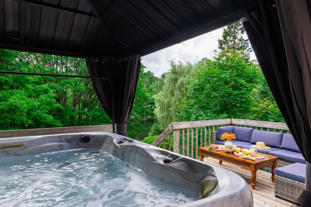 Красивий сільський 4-сезонний затишний котедж на схилі пагорба (1 година їзди від Монреаля). Дуже затишний, без прямих сусідів, спокійний і оточений природою. Насолоджуйтеся скандинавською гідромасажною ванною під зірками та гарною чашею для багаття, де можна приготувати зефір. Патіо з барбекю освітлене для вечорів на вулиці. Доступна аудіосистема Bluetooth. Кілька ігор на території. Доступ до річки Асомпці в 5 хвилинах ходьби. Заходи поблизу. CITQ#279856
