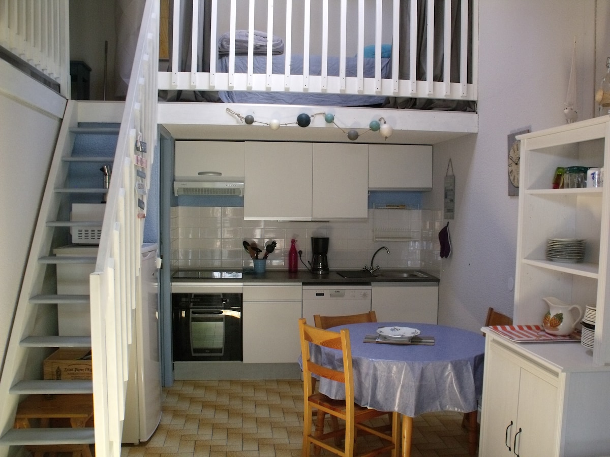 У декількох кілометрах від порту та дитячого острова, пляжі, досить дуплекс Т2, вид на озеро, що складається з приватної тераси, вітальні з обладнаною кухнею, диваном-кроватью, туалетом, пральною машиною, душовою кімнатою. Нагорі, спальня. Тиха, огороджена, лісиста резиденція, з невеликим + великим басейном (доступний 15 червня), спортзалом, булодромом, дитячим ігровим майданчиком, барбекю, критим паркінгом, захищеним кодовими воротами. У вашому розпорядженні садові меблі, шезлонги та парасолька.