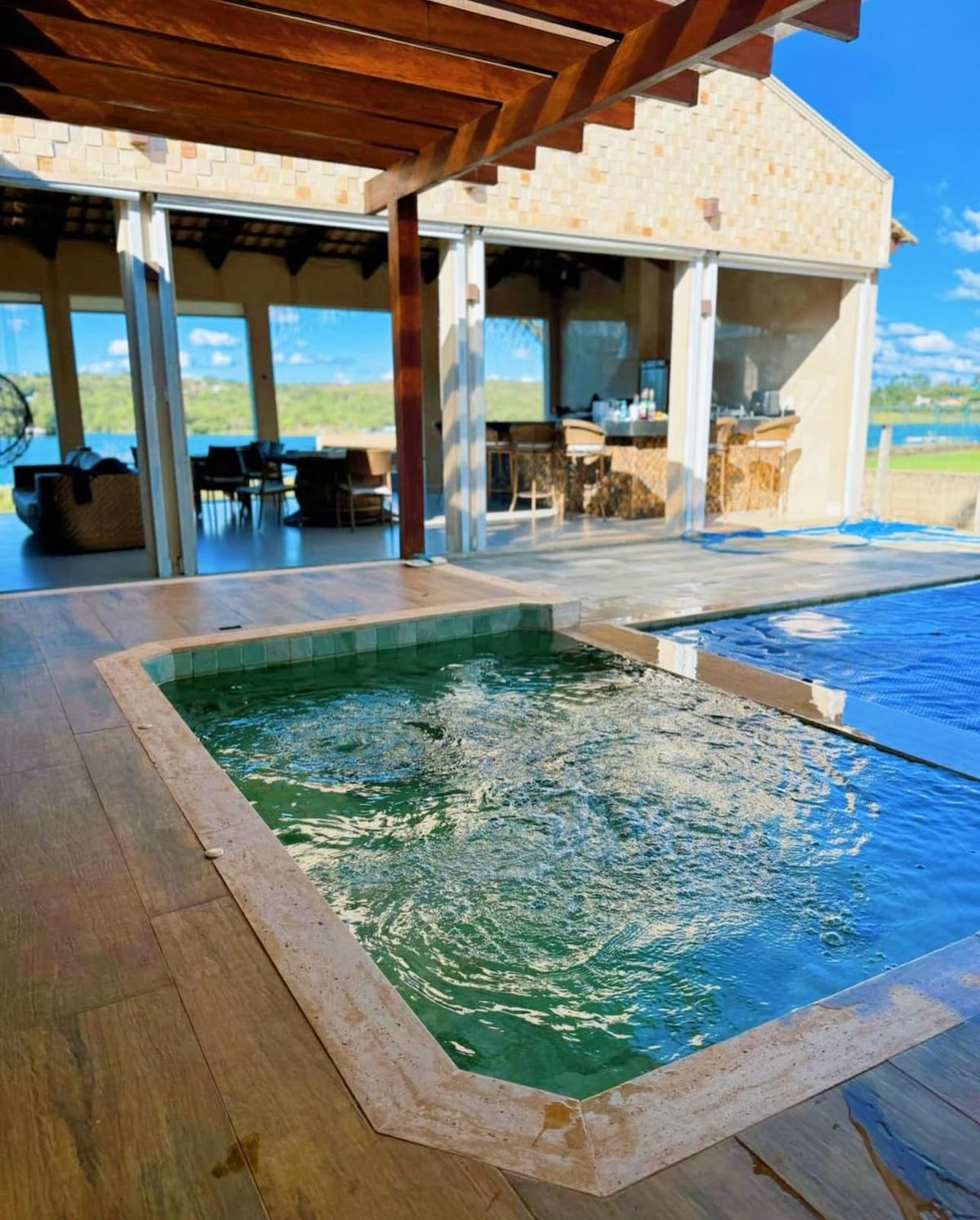 Озеро Корумба IV, в кондомініумі Portal do Lago. Зона відпочинку з басейном з підігрівом, спа, ігровим майданчиком У помешканні можуть комфортно розміститися до 18 осіб. Середовище, де можна провести незабутні моменти з сім 'єю, насолоджуватися прекрасним пейзажем, чистим повітрям і спокоєм, який не має рівних. Автомобільний звук, гучний звук ЗАБОРОНЕНО… Будинок знаходиться менш ніж за 400 метрів від озера, що забезпечує практику риболовлі або навіть насолоджуватися прекрасним купанням.