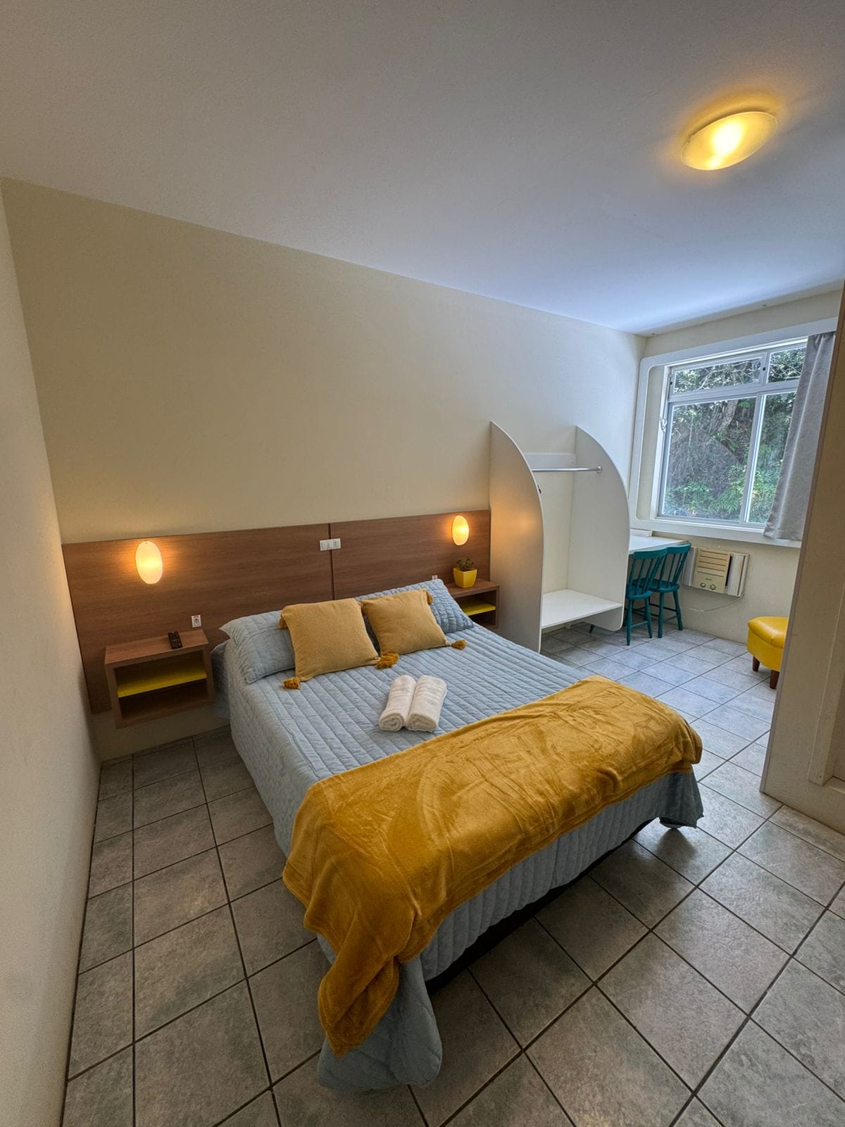 Він розташований у помешканні Pousada, прямо перед Лагоа-да-Консейсан! Багато варіантів відпочинку на пляжах поблизу. Розташування привілейоване, стратегічно посеред проспекту Авенида-дас-Рендейрас, з великою кількістю ресторанів і барів навколо. Kitinete (студія) с повноцінною кухнею (плита, холодильник, мікрохвильова піч та посуд) та пральною машиною. Двоспальне ліжко (є додаткове ліжко - односпальне - нижче). Кондиціонер, кабельне телебачення та стельовий вентилятор.