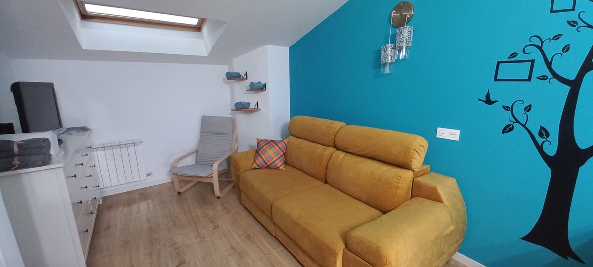 Насолоджуйтеся комфортним перебуванням у цій елегантній, повністю обладнаній студії, розташованій в центрі Вальядоліда. Двоспальне ліжко та диван. Смарт-телевізор і Wi-Fi Кондиціонер і опалення для вашого комфорту в будь-який час. Повністю обладнана кухня з пральною/сушильною машиною, посудомийною машиною, кавоваркою, мікрохвильовою піччю, кухонним приладдям... Приватна ванна кімната: рушники, гель, шампунь та кондиціонер Надувне ліжко надається за запитом. Кроки від площі Пласа-Майор. Незалежний доступ. Перший поверх помешкання
