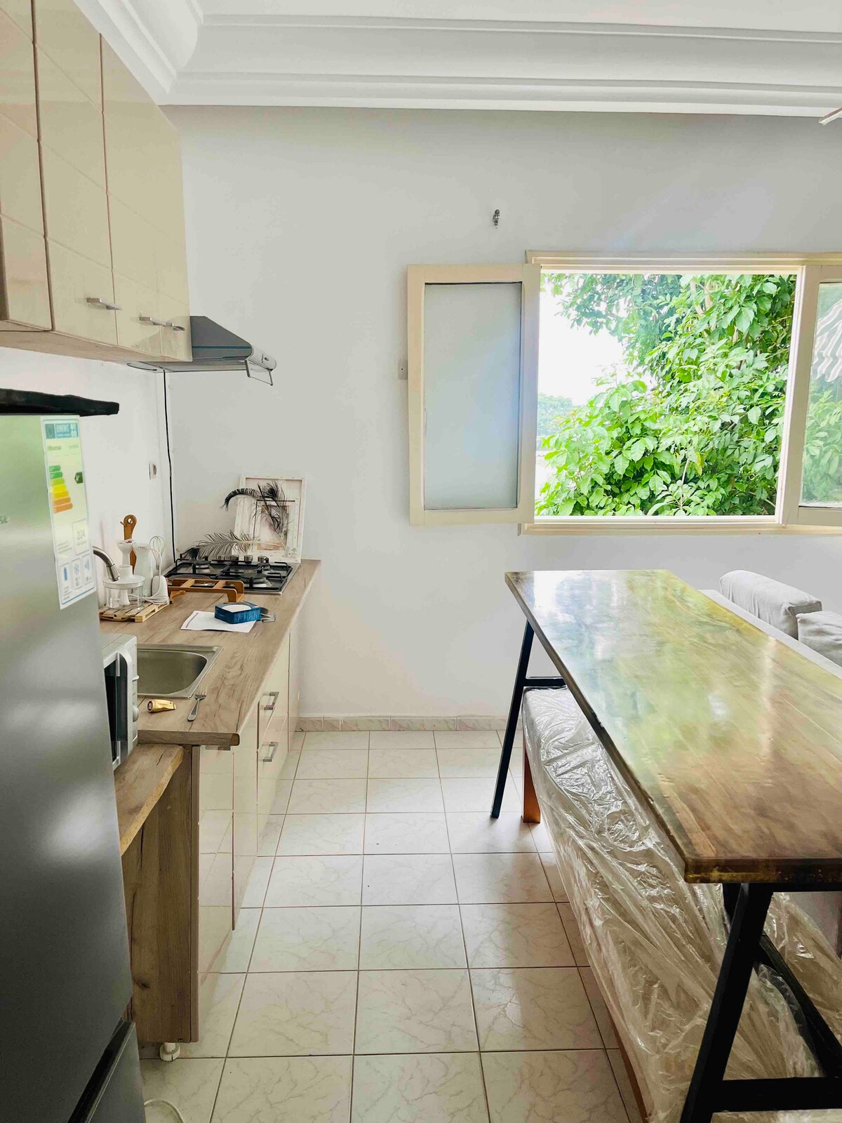 🏅Серед 10% найкращих помешкань на Airbnb. Насолодіться стильною квартирою з 3 спальнями в центрі Зони 4. Яскраве, елегантне й затишне помешкання з вишуканим декором, м’якими тонами, золотими акцентами та місцевим мистецтвом. Ідеально підходить для відпочинку або віддаленої роботи, з постільною білизною готельного рівня, повністю обладнаною кухнею та щоденним прибиранням. Цілодобова охорона забезпечує спокій під час вашого перебування в одному з найяскравіших районів Абіджана.