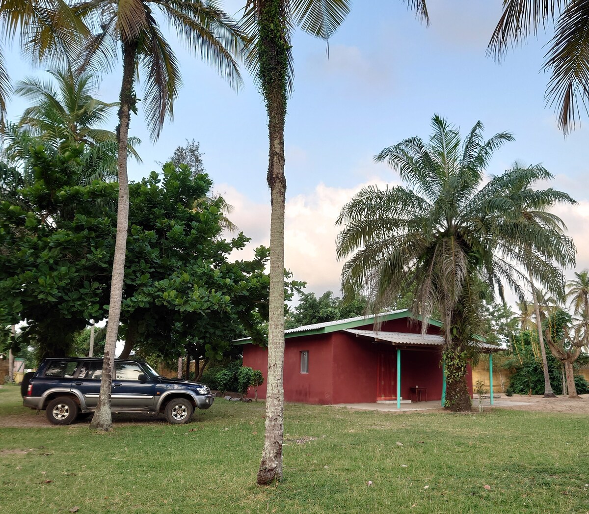 Unser Grundstück liegt nördlich des Fischerdorfes Mondoukou ca. 500 m vom Strand entfernt und ist eine Mischung aus kleinem Bauernhof und Tropengarten mit mehreren Wohn- und Nutzgebäuden, freilaufenden Hühnern, eigenem Gemüsegarten, Kokospalmen, Mango-, Mandel-, Cashewbäumen, Passionsfrüchten… je nach Saison zum Ernten vor der Haustür.