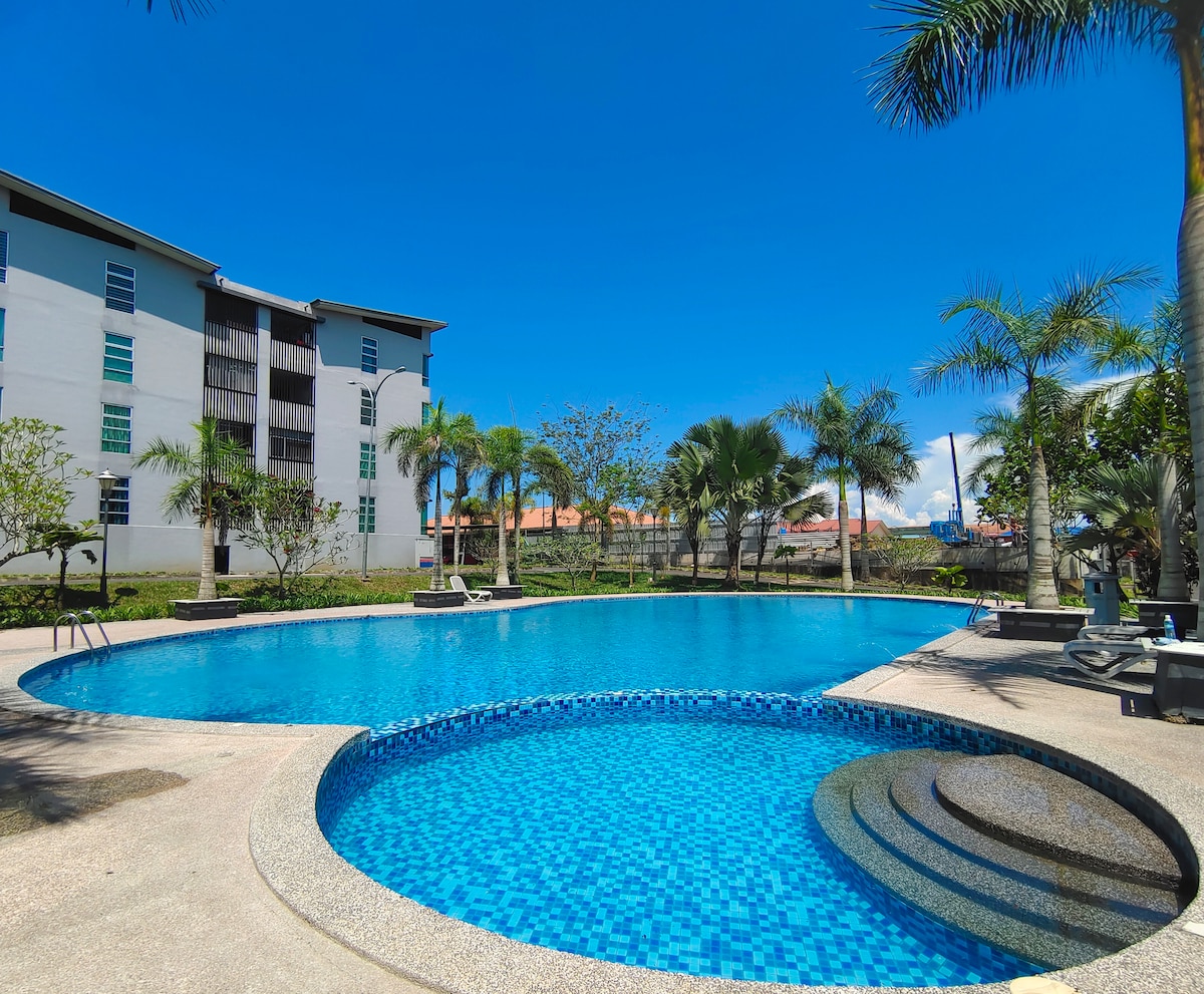 Muslim-friendly homestay in one of elite neighbourhood in Lahad Datu. A peaceful neighbourhood with the biggest swimming pool in Lahad Datu. Ground floor unit easy access by elderly. Closest unit to swimming pool.