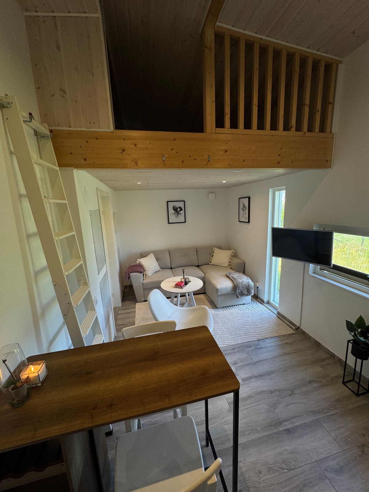Чудовий будинок у 4 км від Бостада. Будинок розташований на фермі з ісландськими конями в фантастичному середовищі з буковими лісами. У будинку є спальня на горищі з двома односпальними ліжками. На першому поверсі є диван-ліжко для 2 осіб. Гарна вітальня з кухнею та каміном. Великий відкритий балкон у всіх напрямках з вуличними меблями та газовим грилем Weber. У районі є пішохідні, кінні та велосипедні маршрути.