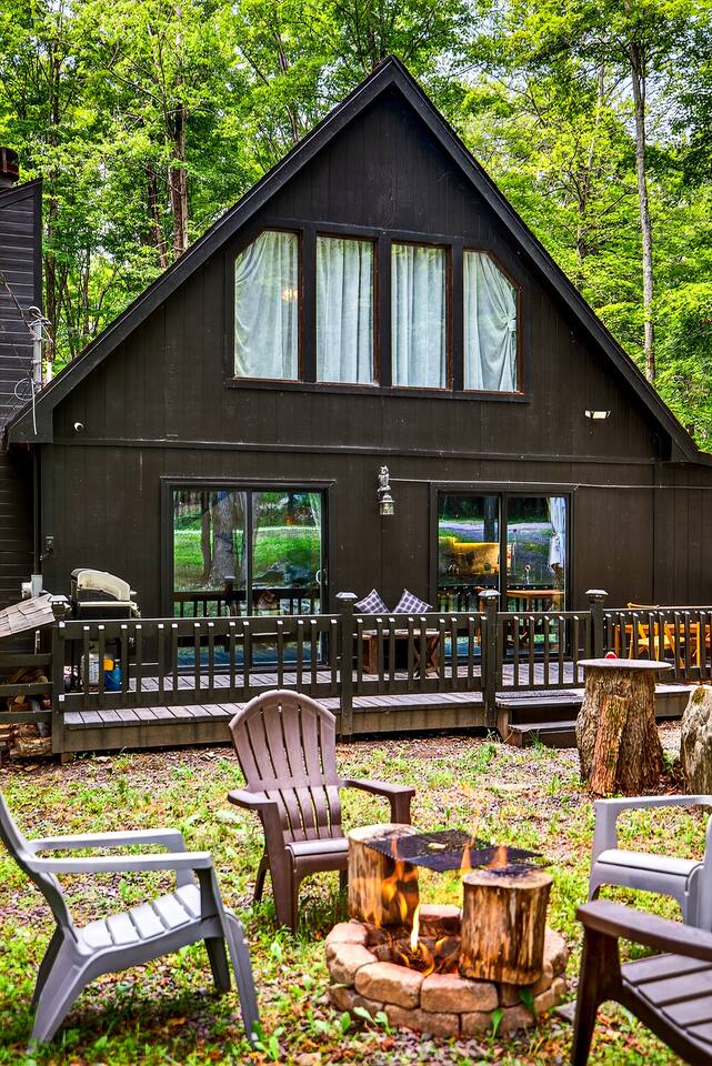 Hot Tub & Fire Pit: Cozy Pines Chalet in Poconos