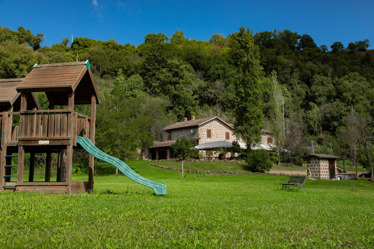 Затишний маленький будиночок, оточений зеленню, приблизно в 100 м від озера, з приватним садом. У кінці помешкання є мальовничий пляж і доріжка, яка веде з одного боку до ресторанів на озері та дитячих зонах, а з іншого - до краси природи, яка оточує наше казкове озеро Больсена. Ідеально підходить для пар, сімей з дітьми та груп друзів. Простіше кажучи, оазис спокою, розташований за 6 км від центру Монтефіасконе і в декількох кілометрах від чудес Тоссії.