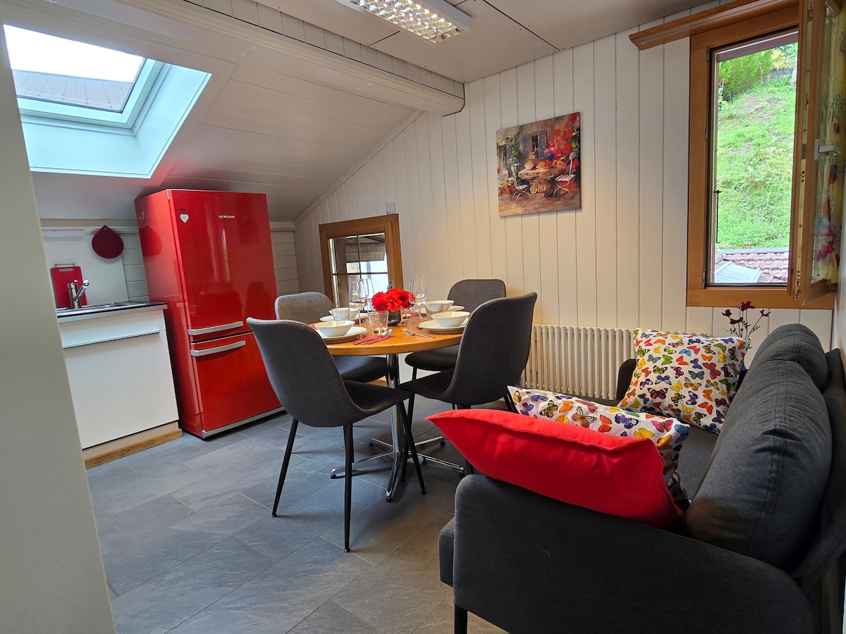 Наш Біжу прямо на прекрасному озері Бріенц для шукачів спокою, романтиків, спортсменів або для домашнього офісу має спальню, окрему кухню, душ/туалет та велику терасу біля озера. Насолоджуйтеся перебуванням, займаючись різними видами спорту та екскурсій у регіоні Юнгфрау, Бріенц і Гасліталь: піші прогулянки, катання на велосипеді, йога на терасі тощо. 10 хв до Брієнца та Інтерлакена Ціни включають туристичний збір, постільну білизну, збір за вивезення сміття Сила сигналу Wi-Fi *домашній офіс* Завантаження 80 Мбіт/с / вивантаження 8 Мбіт/с