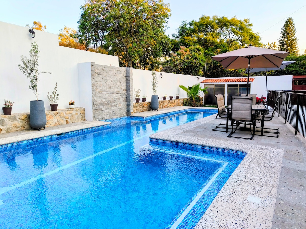 Note FIFA 2026 soccer games will be just 76 km from here in Guadalajara June 11 to 26. Canadian-owned and managed. Spacious and stylish one-bedroom apartment on beautiful property with private balcony, shared salt-water pool and shared patios. High brick-ceilinged living area with ceiling fan, window blinds. Wi-Fi and a 50” TV. Separate bedroom with queen bed, ceiling fan, and nice garden view. Mini-split air conditioning and heating in bedroom.