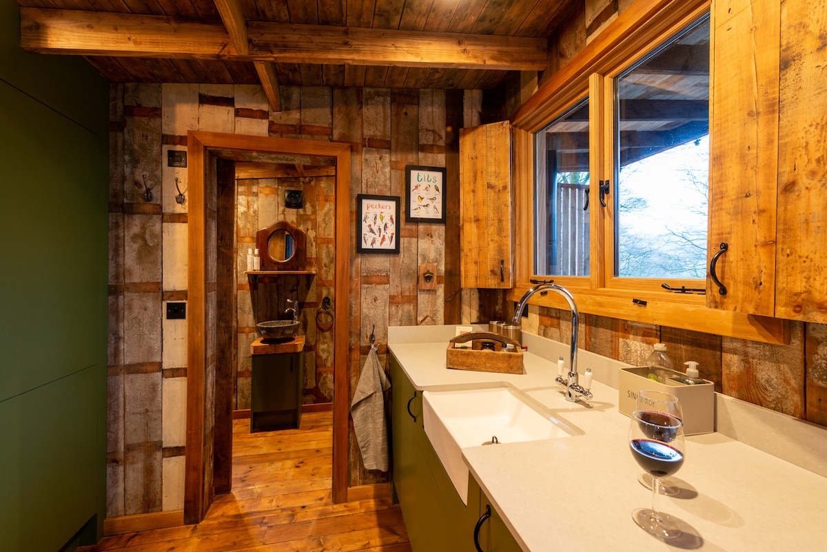 Будинок на дереві Пайнс розташований під величезним дубом, що сидить високо над проточною водою Піщаного Бек. Природний кокос вас, і ви можете зв 'язатися з вами і доторкнутися до дерев, побачити дику природу навколо вас серед сосен. Маючи захоплюючі краєвиди через Тріс і долину, ви повністю приватні, не маючи жодного іншого помешкання на місці, що робить це це справді унікальне та особливе враження. Великі зусилля доклали про те, щоб створити це помешкання, щоб ви могли просто розслабитися та відпочити на природі.
