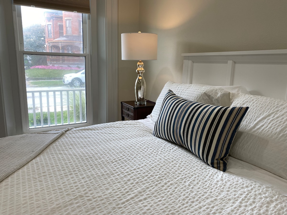 Ласкаво просимо до спокою та спокою The York House Це помешкання захопить дух, з красиво облаштованою територією та 100-річною садибою. Цей будинок був побудований у 1920 році Фредеріком Дж. Осіусом, який винайшов емульгуючу машину. Фредерік також був засновником продуктів Hamilton Beach. Будинок Йорка знаходиться всього в декількох хвилинах ходьби від селища Ріджуей. Тепла вода на пляжі Кристал-Біч знаходиться всього в 5 хвилинах ходьби. Ми пропонуємо чудовий люкс з окремою ванною кімнатою.