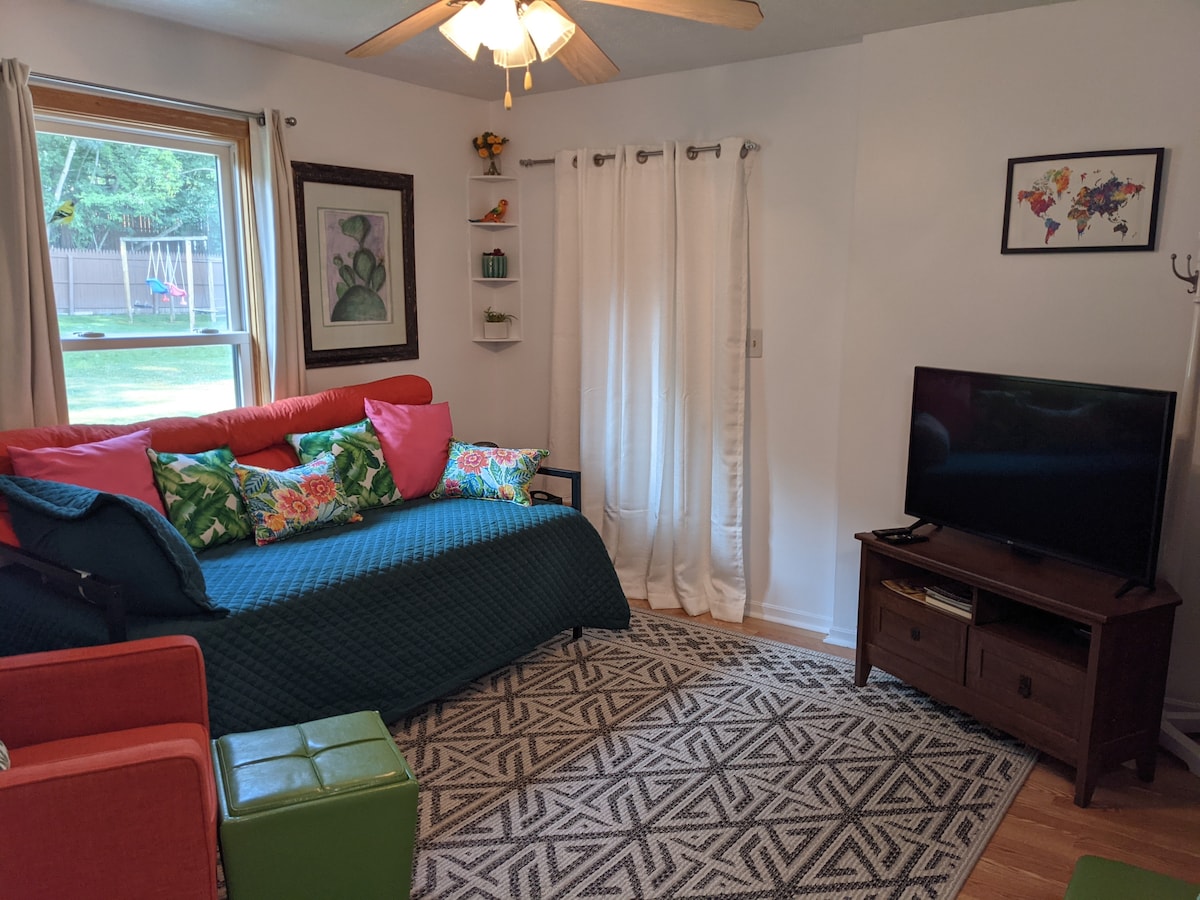 Ми не приймаємо місцевих жителів. Наша окрема ванна кімната з 2 спальнями та однією ванною кімнатою - ідеальне місце для цілорічних заходів. Він прикріплений до нашого помешкання, але має власний окремий вхід із закритим під 'їздом. Поруч пляжі, парк розваг, аквапарк і походи на природу. Є безкоштовний доступ до гідромасажної ванни та мангалу для барбекю. Парковка розташована поза вулицею, з місцем для вашого човна або причепа.