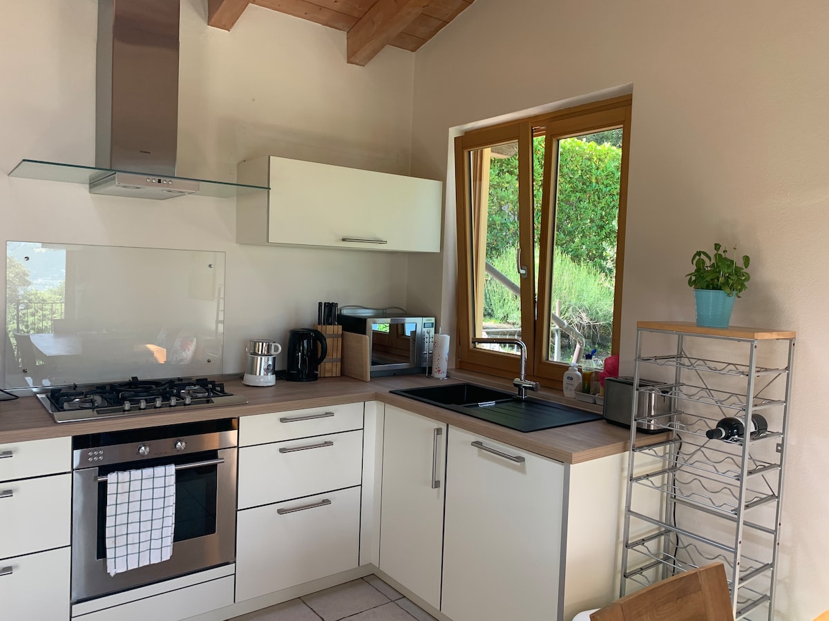 Casa di montagna a 600m di altitudine, immersa tra castagni e faggi. Distante 6km da Arco, nelle vicinanze del Lago di Garda, ideale per una vacanza rilassante e home working, per gli amanti del trekking, MTB, arrampicata e passeggiate nella natura. Dotata di tutti i confort abitativi, dispone di ampio giardino recintato (300 mq), parcheggi auto privati e zona relax esterna per trascorrere serate in compagnia. Gli animali sono i benvenuti. Internet satellitare velocità 200/250 mb/s.