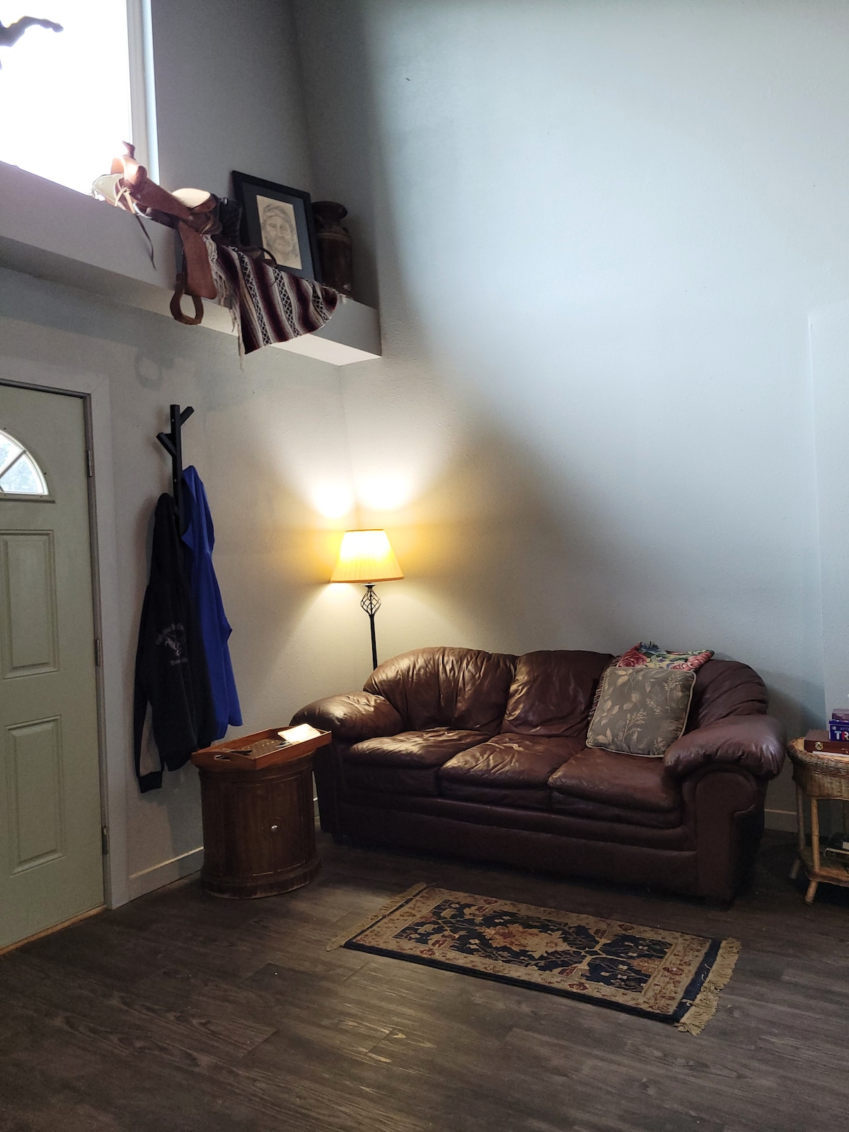Тихий район, розташований на заході Пуебло. Сидить дуже близько до нашого будинку. Це дуже маленький, але нещодавно відремонтований міні-будинок! 12 x 16 футів одна кімната, ліжко queen-size, приємний душ і туалет з дверима стодоли для усамітнення у ванній кімнаті. Барна стійка з двома табуретами, смарт-телевізор з електричним каміном у кутку надає йому трохи романтики! Loveseat з відтоманкою. Маленький лофт, в якому діти можуть спати на короткий термін. Невеликий кавник, холодильник під стільницею та гарне дзеркало над раковиною на фермі.