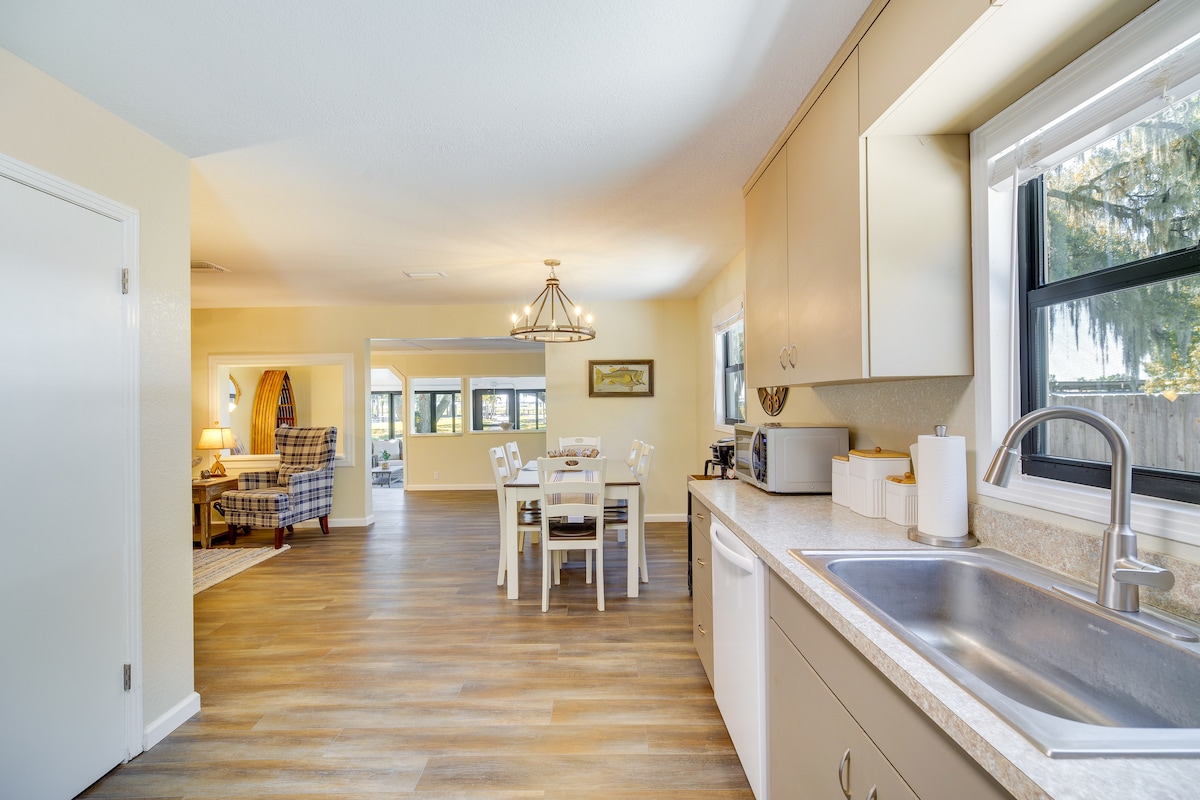 Наш будинок в стилі модерну середини століття розташований у парку Бабсон на озері Крукд-Лейк у Центральній Флориді. Він має 3 спальні, 2 ванні кімнати, площу 1500 квадратних футів і розташований в кінці приватної дороги на сімейному півострові, оточеному водою, з приватним пляжем довжиною 100 футів. За хвилини від кількох тематичних парків і сімейних ресторанів. Закріпіть човен у каналі позаду будинку. Тут є 2 байдарки, відкриті місця для відпочинку, накритий паркінг на 2 машини, газовий гриль для барбекю, а з кожної кімнати відкривається чудовий вид. Ваша сім 'я може насолоджуватися риболовлею та водними видами спорту протягом усього дня!