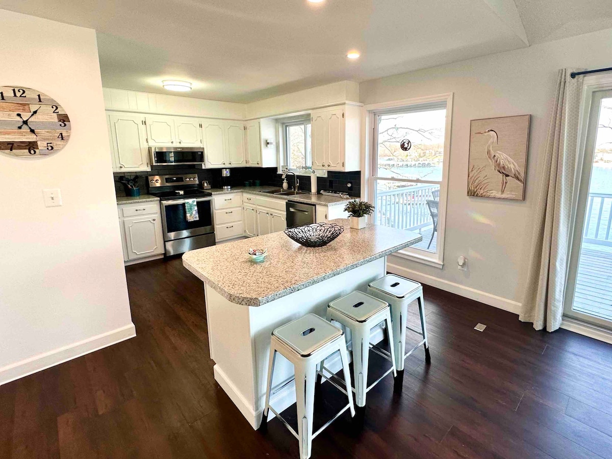 Цілий будинок на озері готовий до наступного відпочинку на озері з родичами або друзями. Простора вітальня, включаючи простір на відкритому повітрі з приватним причалом і байдарками для використання! Спостерігайте за заходом сонця на причалі під час гриля або біля газової вогнища. Затишне помешкання поруч із дров 'яним каміном. **НОВИЙ варіант ОРЕНДИ ЧОВНА LOWE Tritoon або місце для бокового причалу човна. Поруч зі смугою, продуктовими магазинами та ресторанами. Міні-гольф, картинг і виноробня також знаходяться неподалік. Ідеально підходить для відпочинку на вихідних.
