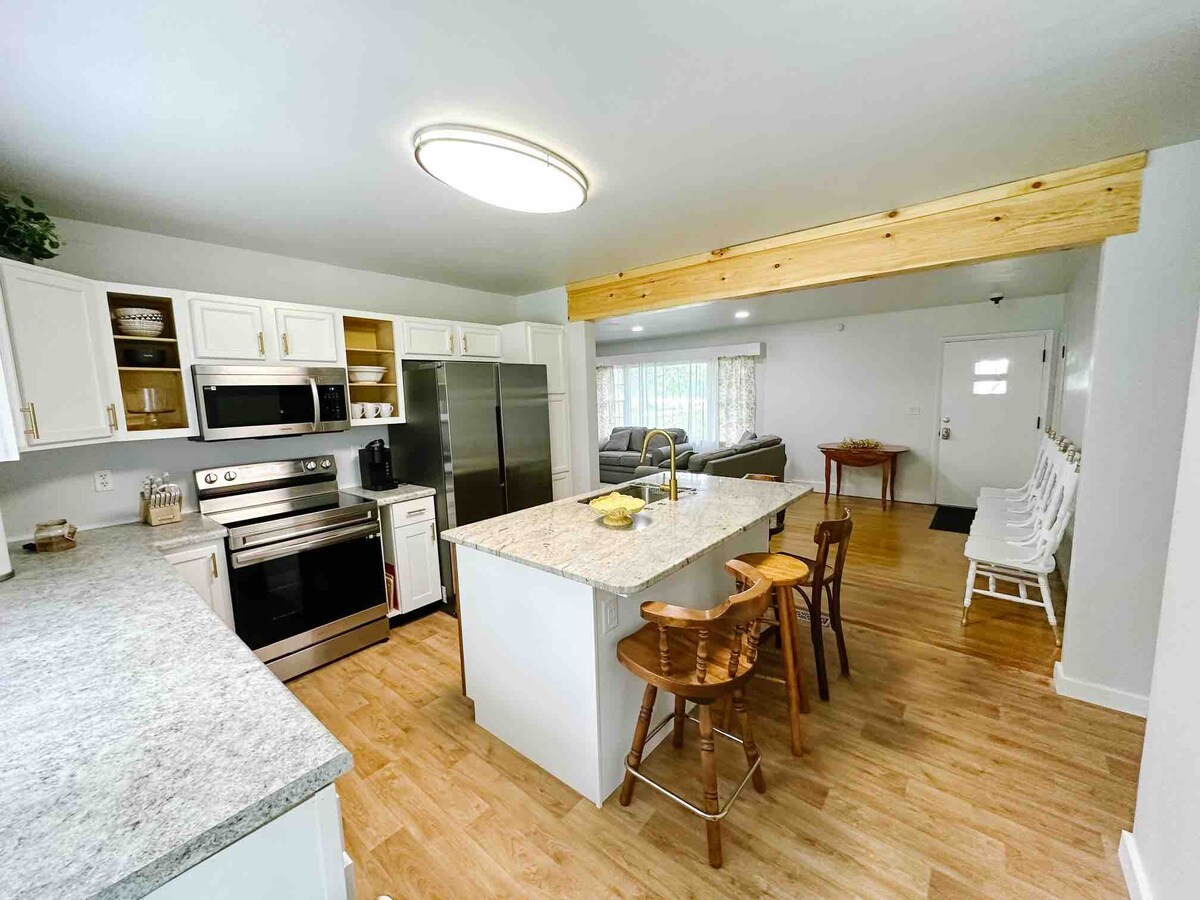Відкритий і освітлений для відпочинку та відпочинку. Приватна парковка на 2 автомобілі безпосередньо збоку. Обгорніть ганок і сад для розваг, смаження на грилі та розмови. Велика кухня(сидіння 4), їдальня(8 місць) та салон для розваг (на 6 місць). Вітальня / телевізійна кімната з Apple TV для перегляду NETFLIX та телевізора(без кабельного телебачення). Кілька робочих столів з зоною для читання та відпочинку в офісі та головній спальні. Великі спальні з вбудованими шафами. Встаньте душові та ванні кімнати з рушниками / провізією в кожному з них.