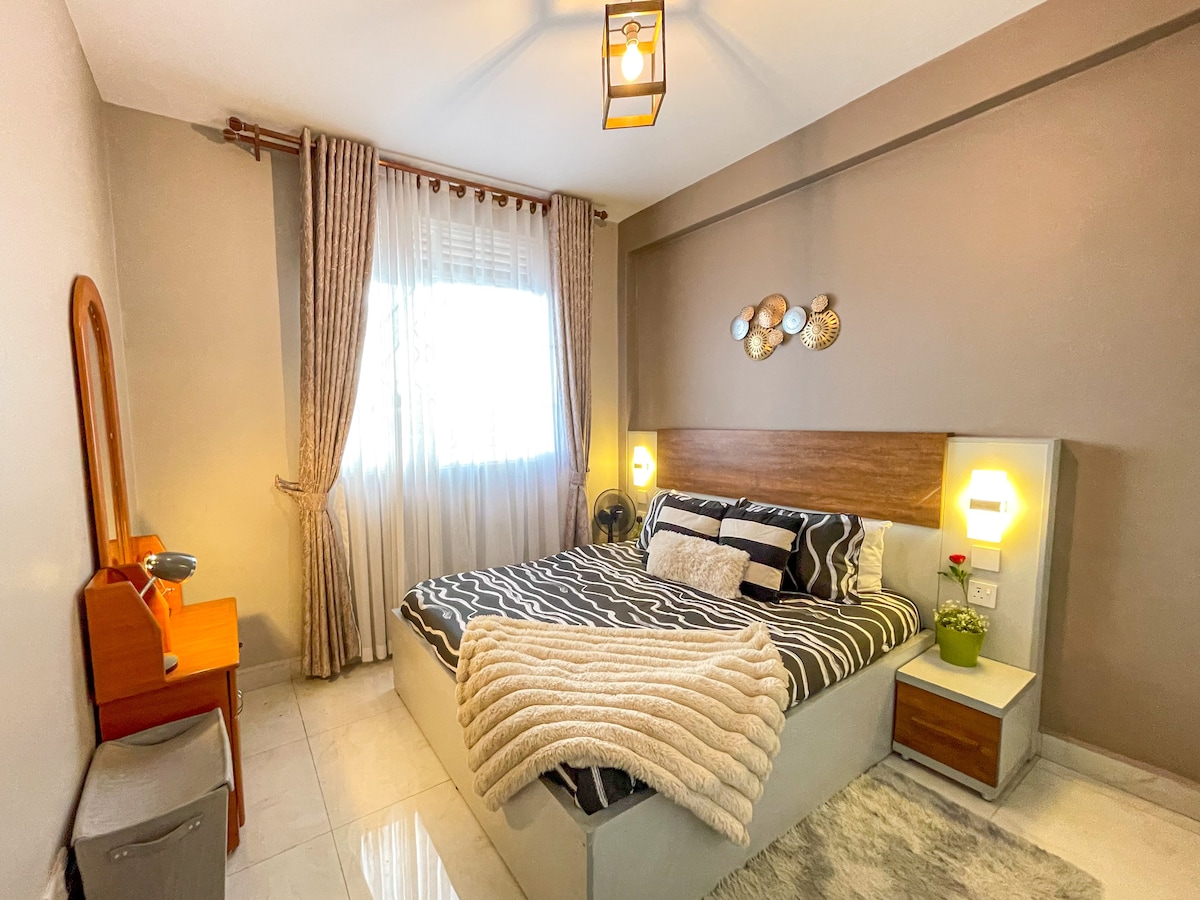 Welcome to your cozy hideaway in the heart of Bukoto!This modern studio is perfect for business, adventure, or a relaxed stay. Enjoy a comfy queen bed, fully equipped kitchenette,fast Wi-Fi,smart TV and a sparkling clean bathroom. Located in a lively and secure neighborhood, you’re just minutes away from cafés, tasty street food (try the Rolex!),local markets and nightlife hotspots. P.S.: - No parking available! Gym in the building (extra fee); minor noise during gym hours. Karibu Nyumbani!