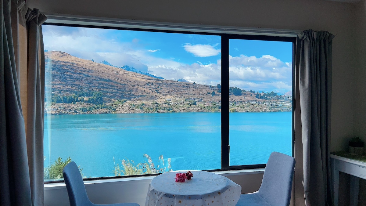 З цього розкішного помешкання з двома спальнями на сонячному головному поверсі відкривається приголомшливий вид на озеро Вакатипу та гори. Весь головний поверх у вашому розпорядженні. Квартира нагорі закрита, тому ви зможете насолоджуватися повною конфіденційністю та безпекою під час вашого перебування. Ми прагнемо забезпечити все для вашого ідеального відпочинку. Потрібні поради або допомога? Зв 'яжіться з нами в будь-який час. Ми з радістю поділимося порадами щодо пропуску лінії Ferg Burger, обов' язкових завдань і переоцінених місць. Насолоджуйтеся приватним доступом, самостійним прибуттям та спокійним перебуванням.