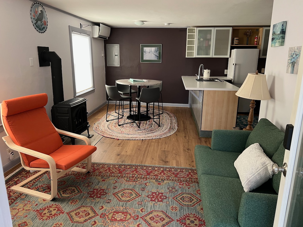 Унікальне помешкання, натхненне юртою зі спіральними сходами, затишною головною спальнею, сільською темою, дров 'яною плитою та сучасною кухнею з нержавіючою технікою. Сезонний каток 25x45, гідромасажна ванна, кам' яний камін, приватний пляж, велика тераса та центральний кондиціонер. Ідеальне місце для відпочинку з підйомниками на відстані 1 милі, пішохідними стежками та такими зручностями, як Keurig, Instapot і настінний телевізор із послугами потокового передавання. Доступ до будиночка Moose Lodge і зрубів із прогулянками на березі річки, риболовлею та дикою природою. Справжній виробник пам 'яті!