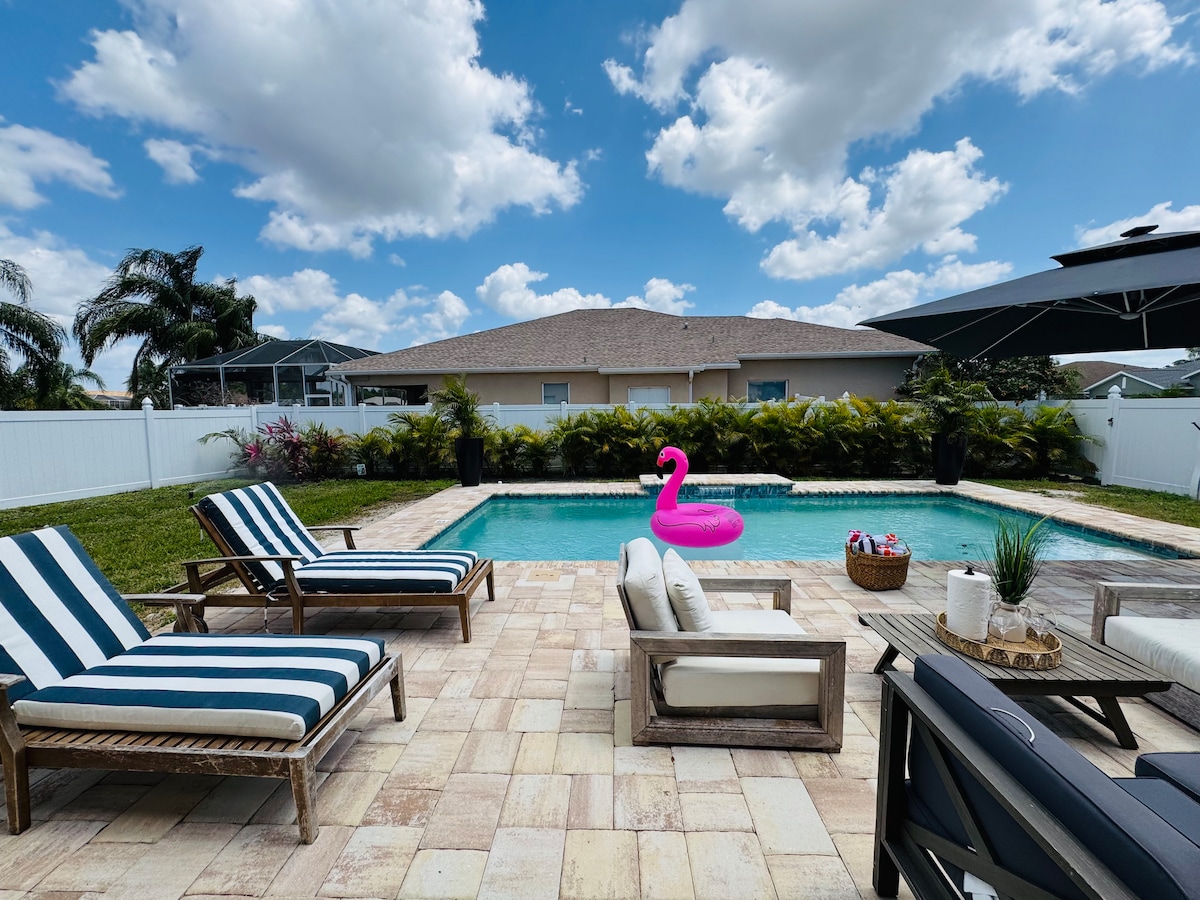 ✨ Повністю відремонтований і стильний! ✨ Для сімей і собак | Одноповерховий | Приватний басейн із солоною водою | Усамітнений задній двір. Насолоджуйтеся шармом Сарасоти в нашому повністю оновленому помешканні біля Університетського парку. Яскраві відкриті простори з новими меблями, ідеально підходять для відпочинку. У приватному огородженому дворі є басейн із солоною водою з підігрівом. Поруч із прекрасними пляжами - 10 миль до пляжу N. Lido і в 13 милях від пляжу Сієста-Кі. Зручне розташування в 4 милях від аеропорту SRQ, ідеально підходить для наступного незабутнього відпочинку.