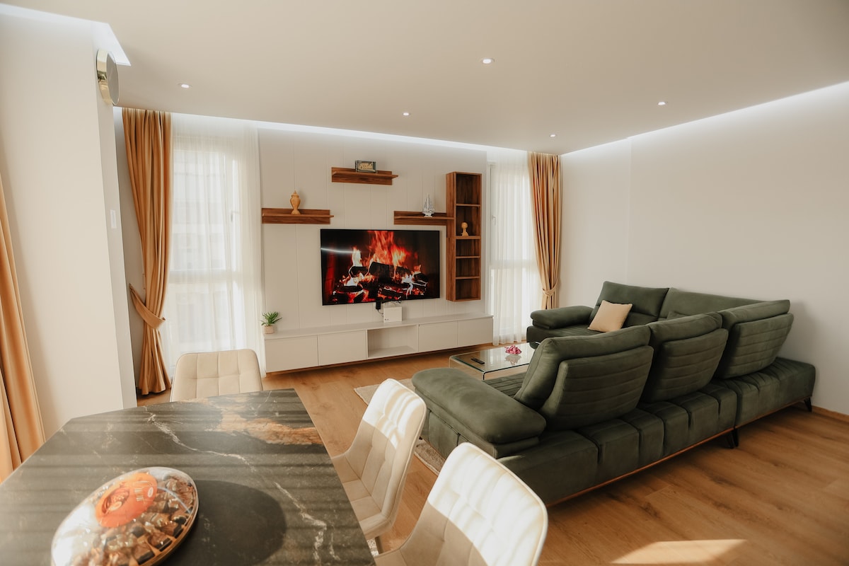 Welcome to our stylish and comfortable one-bedroom apartment, perfect for couples, solo travelers, or small groups! Located in the center of Kamëz, our apartment offers easy access to everything you need. Just 10 minutes from Albania’s International Airport and 15 minutes from Tirana’s city center, it’s an ideal base for both business and leisure travelers. Inside, you’ll find a fully equipped kitchen, a cozy living area with a sofa bed, and a modern, inviting decor that makes you feel at home !