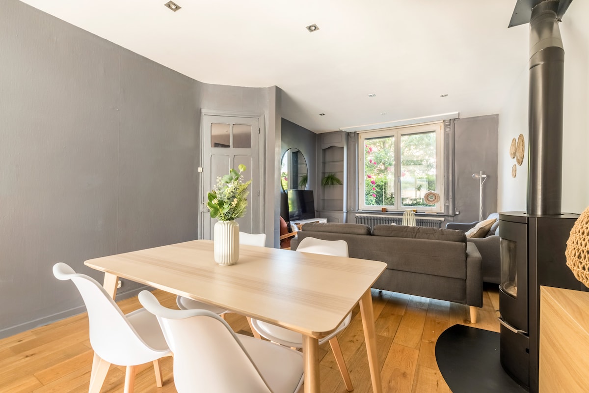 Ce logement paisible offre un séjour détente pour toute la famille. 4 chambres équipées de lits doubles, 2 salles de bains et 2 WC permettront à une famille ou des amis de se sentir au calme dans un quartier résidentiel. Maison avec cachet, façade verdoyante, parquet ancien aux étages! Un intérieur coquet et tout équipé pour un séjour serein.
