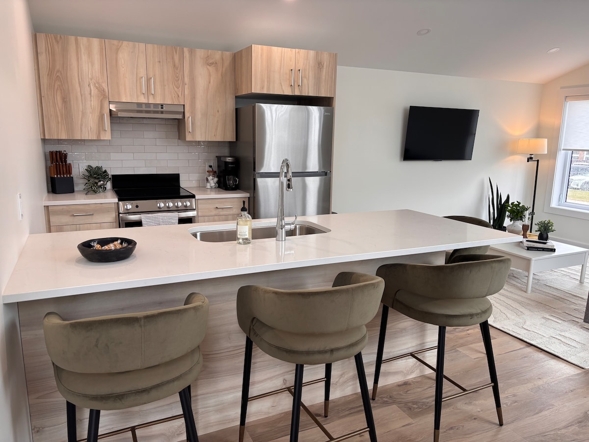 Нещодавно відремонтована та красиво мебльована квартира в центрі міста Чатем. Квартира розташована в унікальному 100-річному вікторіанському стилі з 10-футовими стелями. Квартира знаходиться в декількох хвилинах ходьби від центру міста. Ідеальний відпочинок для тих, хто відвідує Чатем для бізнесу або задоволення. Повністю укомплектована кухня та ванна кімната мають все необхідне. Постільна білизна, мило та кава надаються! Безкоштовне паркувальне місце для гостей. Високошвидкісний Wi-Fi включено. Електронний вхід без ключа для зручності. Ліжко Queen Size з ПРИТУЛКОМ.
