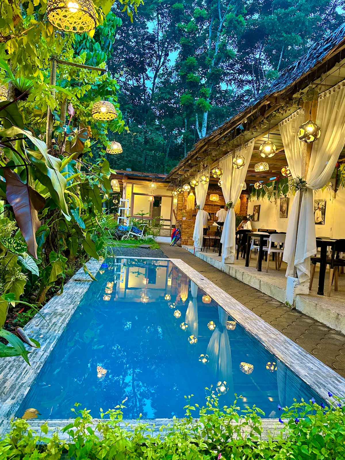 Насолоджуйтеся зі своєю сім 'єю на цій новій стильній та затишній віллі Хейвен біля озера (сторінка Fb). Ця двоповерхова вілла має просторий лофт (з кондиціонером) та балкони як вгору, так і вниз, де гості можуть відпочити з мальовничим видом на озеро та пишною зеленню. Заходи НА свіжому повітрі: каяк, весловий човен, катання на човнах, риболовля, баскетбол, настільний теніс, більярдний стіл, бадмінтон, багаття вже включені в пакет. Велика плавуча бальза з кушеткою - для відпочинку, їжі та купання біля озера. Відеоке та гідроцикл можна орендувати.