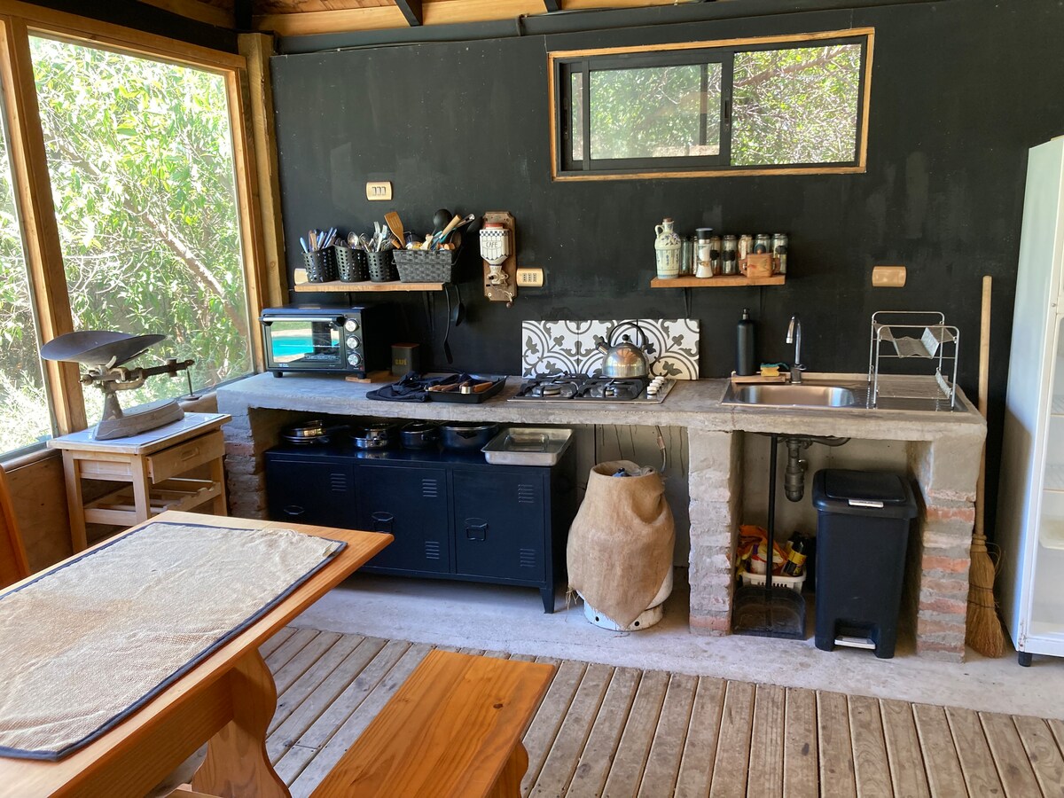 Довкола нетронутого лісу та потужної природи Купол підвішений на лимані Життя. (Estero de la Vida). Наш простір належить для спокою і спокою, ми розташовані на схилах Національного парку, ідеального місця, щоб насолоджуватися одноденними поїздками в Сантьяго, Вінья-дель-Мар або Вальпараісо лише в 1 годині 15 хвилин. Купол діаметром 7 м становить 40 м2 площі на півгектарі землі. Уютний з двоспальним ліжком та обігрівачем, це ідеальне місце для повторного з 'єднання, відпочинку та відпочинку. Примітка: тільки компостний туалет.