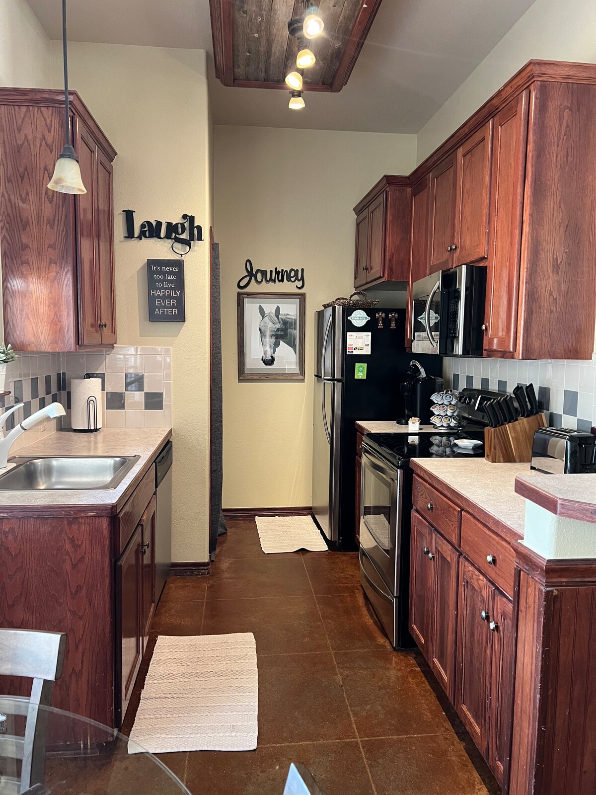 Ласкаво просимо до Hankins ’Hideaway, чарівного західного помешкання Americana, розташованого в центрі Лампасаса, штат Техас. Цей будинок із 3 спальнями та 2 ванними кімнатами поєднує в собі сільський шарм Америки з сучасними зручностями, пропонуючи ідеальний відпочинок для сімей, пар або друзів. Відпочиньте у затишній вітальні, приготуйте свято на повністю обладнаній кухні або розслабтеся біля каміна під зірками Техасу. Зручне розташування поблизу центру міста Лампасас, місцева їдальня та пригоди на свіжому повітрі - ваш ідеальний відпочинок чекає на вас!
