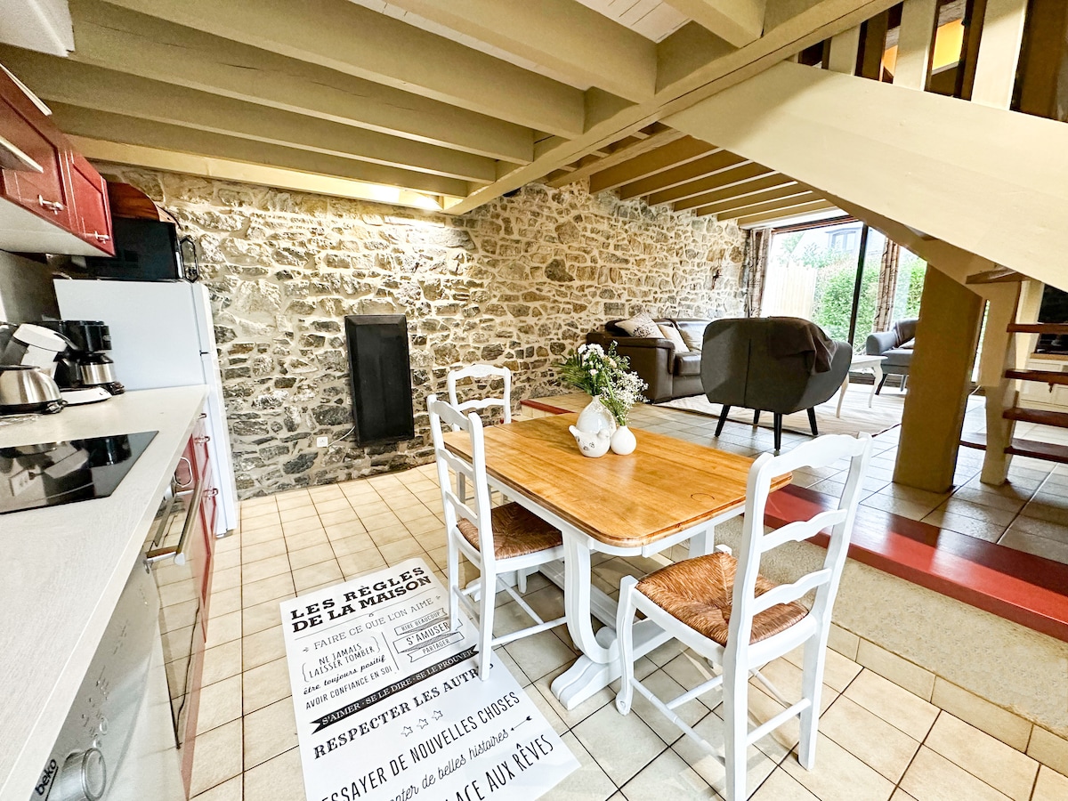 Ласкаво просимо в наш маленький гостьовий будиночок у сільській місцевості! У 10 хвилинах від пляжу Лансьє можна насолодитися задоволенням сільської місцевості та моря! Наш невеликий будинок ідеально підходить для пар і сімей, є гарною відправною точкою для знайомства з Смарагдовим узбережжям (від Кап-Фрехеля до Канкале, через Дінар і Сен-Мало). І Мон-Сен-Мішель. До зустрічі! Наш будинок, розташований у 10 хвилинах ходьби від пляжу Лансьє, дозволить вам насолоджуватися як узбережжям, так і сільською місцевістю!