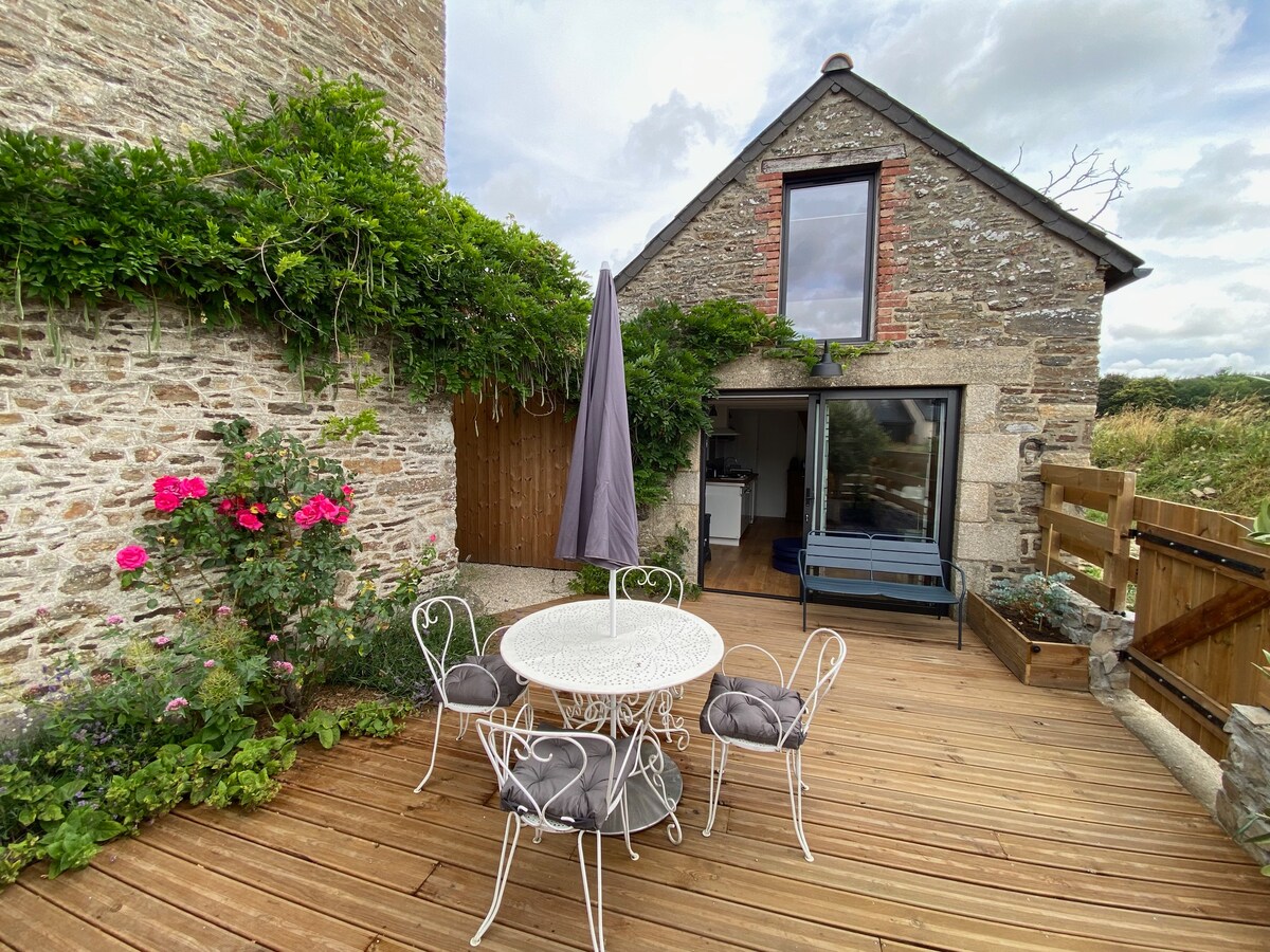 Невелика надбудова (12 м2 на землі) повністю відремонтована, ідеально підходить для відкриття берегів Ранче та регіону (Дінар 20 хв, Сент-Мало 20 хв, Дінан 15 хв, Мон-Сен-Мішель 40 хв).