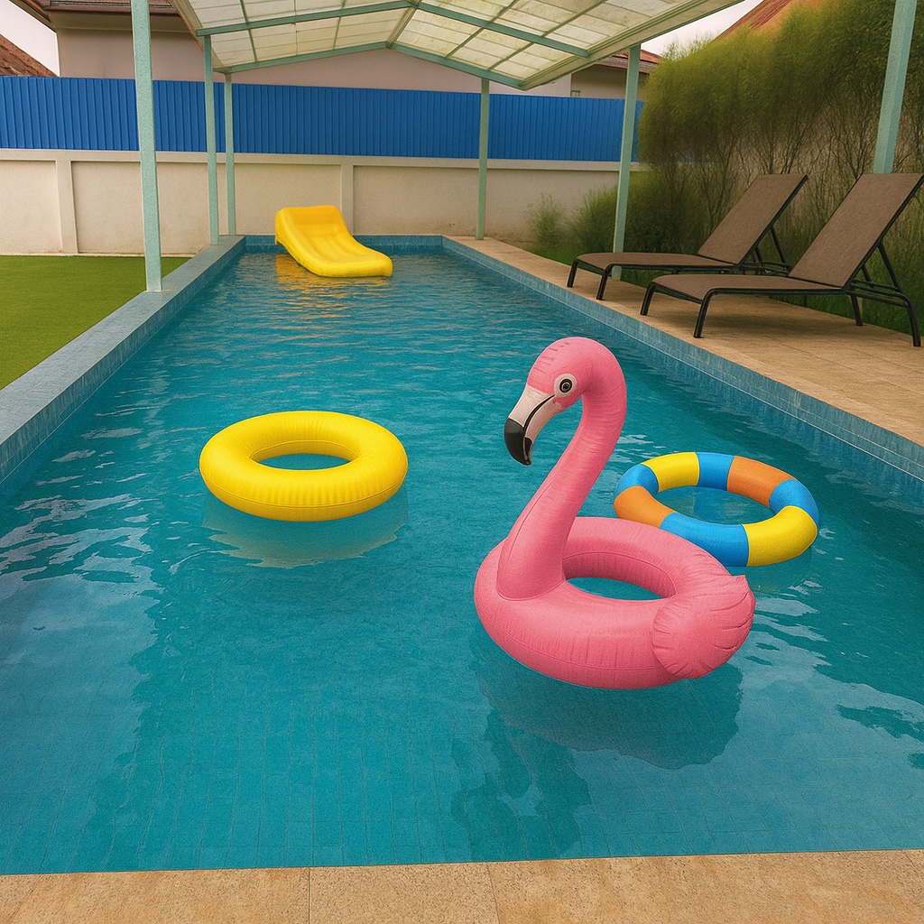 4 кімнати + 2 допоміжні кімнати Індивідуальна ціна доступна для 1-6 осіб. Всього можливі 6 осіб 3 ванні кімнати 1 допоміжна ванна кімната у вітальні 1 ванна кімната біля басейну 1. Дуже просторий зовнішній/внутрішній простір понад 150 піонгів 2. Дуже близько до туристичної вулиці та в 2,6 км 3. Поруч багато продуктових магазинів і великий супермаркет 4,250-дюймовий промінь HD-проектора (Netflix, YouTube) 5. 4 ліжка + 2 додаткові кімнати та ліжка 6. Красиве освітлення басейну та в приміщенні