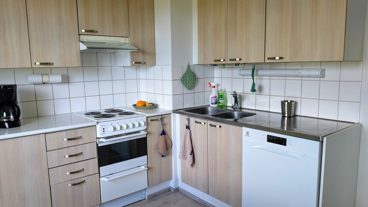 Відпочиньте в цьому тихому та стильному просторі. Поруч природа. Гарні можливості для фізичних вправ (доріжка для бігу 1,5 - 20 км також для їзди на велосипеді та катання на лижах), критий басейн поруч. Ресторани та культурні заклади в декількох хвилинах ходьби. Власна вхідна двері в квартиру. Безкоштовне паркування у дворі. Кухня обладнана холодильником/морозильною камерою, індукційною плитою/духовкою, мікрохвильовою піччю, посудомийною машиною та столовими приборами. Безкоштовний Wi-Fi та телевізор високої чіткості. Пральна машина та праска в кімнаті для побутових справ. Шампунь, гель для душу та мило для рук входять у вартість.