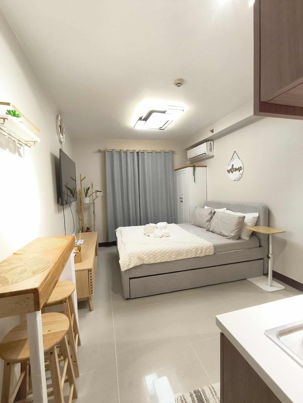 Досліджуйте місто Лапу-Лапу|БЕЗКОШТОВНИЙ басейн|Тренажерний зал|Швидкий Wi-Fi|Netflix|Поруч з аеропортом і Мактан Ньютаун Помешкання, як у готелі, з 1 двоспальним ліжком з преміальною постільною білизною + диваном та світлозахисними шторами. Чудові краєвиди на місто та дерева, басейн і сад – усе це в кількох кроках від кафе, торгових центрів і бізнес-центру. Ця освітлена сонцем студія має сучасний мінімалізм із розумним дизайном: Чудовий вид на дерева|Компактна розкіш|Кухня для шеф-кухаря|Спокійна атмосфера! Не пропустіть наші акції та знижки! Надішліть нам запит або повідомлення