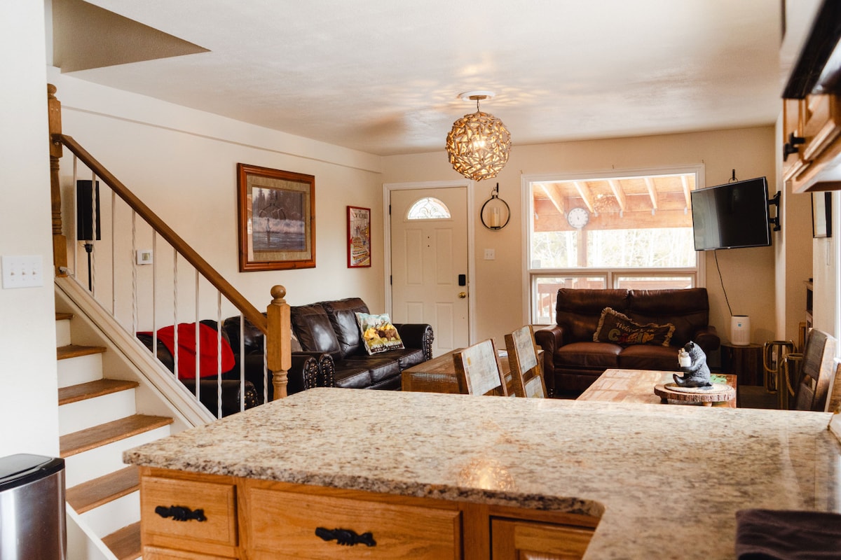 Відпочиньте в гідромасажній ванні Elk Ridge і насолоджуйтеся краєвидами з цього просторого будиночка з 4 спальнями біля підніжжя гори Проспект (дозвіл 3056). Насолоджуйтеся спостереженням за дикою природою з заднього ганку - лосі, олені та сотні диких індиків бродять вільно! За хвилини від центру міста та національного парку. + Приватна гідромасажна ванна + Ліжка king-size і queen-size + Кімната відпочинку з футболом, ігри + Повністю укомплектована кухня. + 2 великі смарт-телевізори + Вітальня на відкритому повітрі з барбекю та місцем для багаття. + Іграшки та дитячі аксесуари Ідеально підходить для груп до 8 осіб!