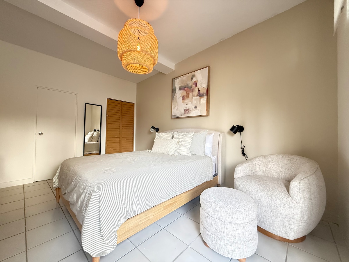 Прокиньтеся в розкішному ліжку розміру King із преміальною постільною білизною, милуючись приватним басейном, обрамленим пишними пальмами. Почніть день зі сніданку на повністю обладнаній кухні, а потім поспілкуйтеся онлайн за допомогою блискавичного Wi-Fi під затіненою перголою. Охолодіться в басейні або прийміть гарячий душ на відкритому повітрі, перш ніж прогулятися до найкращого пляжу Сан-Хуана, що знаходиться всього за 50 ярдів. Ідеально підходить для пар, індивідуальних мандрівників, віддалених працівників або невеликих сімей, які шукають комфорт і стиль.