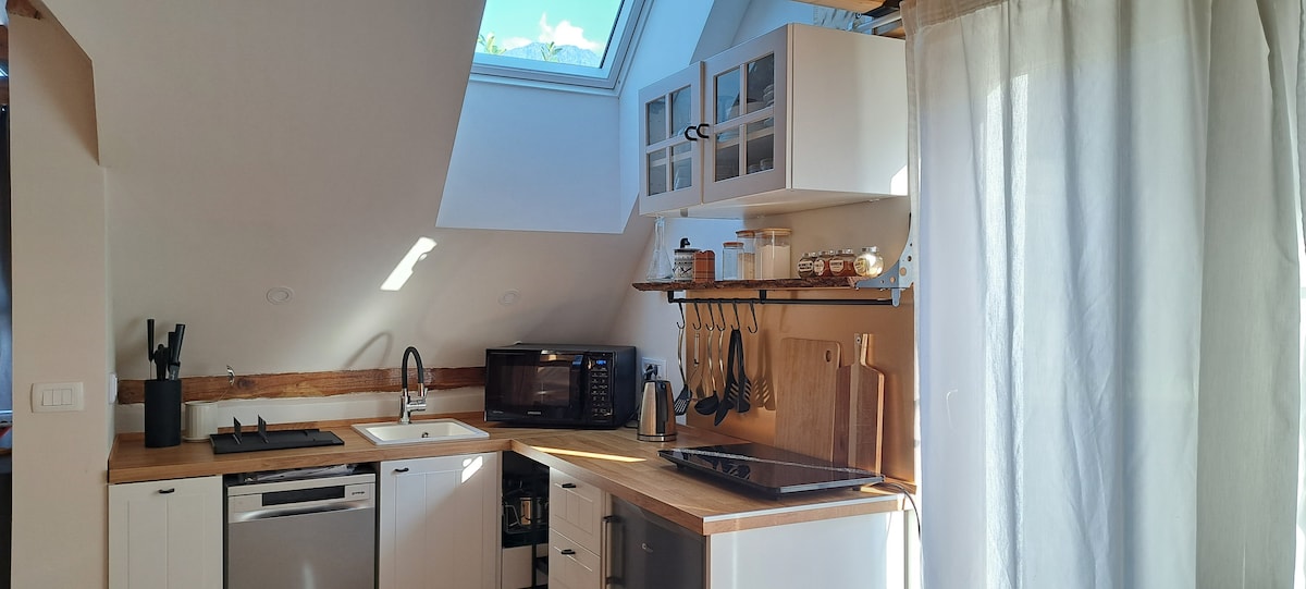 Apartment Chilly is situated in a peaceful area Mlino, 800m/10min walk to Lake Bled. Apartment is all new, cozy and warm. You will have unique view on the mountains from the bedroom and terrace. On the garden you will have your own private hot tube and infra red sauna. Hot tube can be used all year between 10- 22h. Evenings here are magical because of beautiful sunsets and sounds of nature. Our place is good for couples, friends, solo adventurers, business travelers, and families (with kids).