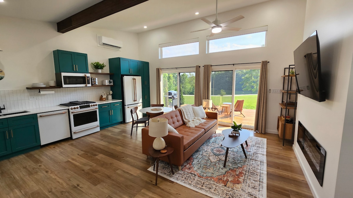 Відкрийте власну казку в нашому затишному заміському будинку для пар. Цей чарівний мінібудинок - ідеальне місце для романтичного відпочинку або відпочинку за чашкою кави та книгою. Відпочиньте на критому ґанку, поки птахи співають, а метелики пропливають повз. Також є бонусна двоповерхова кімната для ваших малюків. - 15 хвилин від печери Старого чоловіка та центру Логана. - Приватна гідромасажна ванна, камін на вулиці та патіо. - Дрова на території - Повна кухня. - Фрейм-телевізор. - Віконний куточок - Рушники для ванної кімнати та гідромасажної ванни