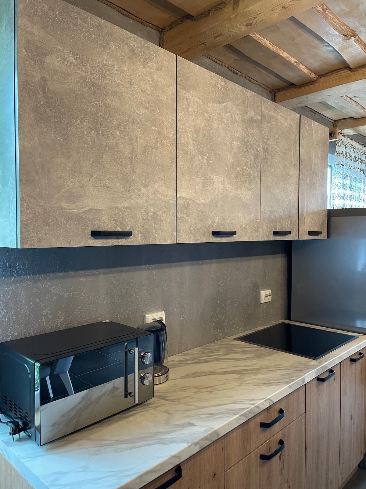 Незабутнє місце, розташована серед карпатських гір та біля лісу. Будинок має дві спальні кімнати з великими ліжками, повністю обладнану кухню з сучасною технікою, зручну вітальню з видом на гори та камін, де можна затишно провести вечір. Будинок має терасу з меблями для відпочинку та барбекю. У будинку є санвузол, душ, пральна машинка. Завдяки великим вікнам ви зможете насолоджуватись красивим карпатським пейзажем прямо зі свого помешкання.