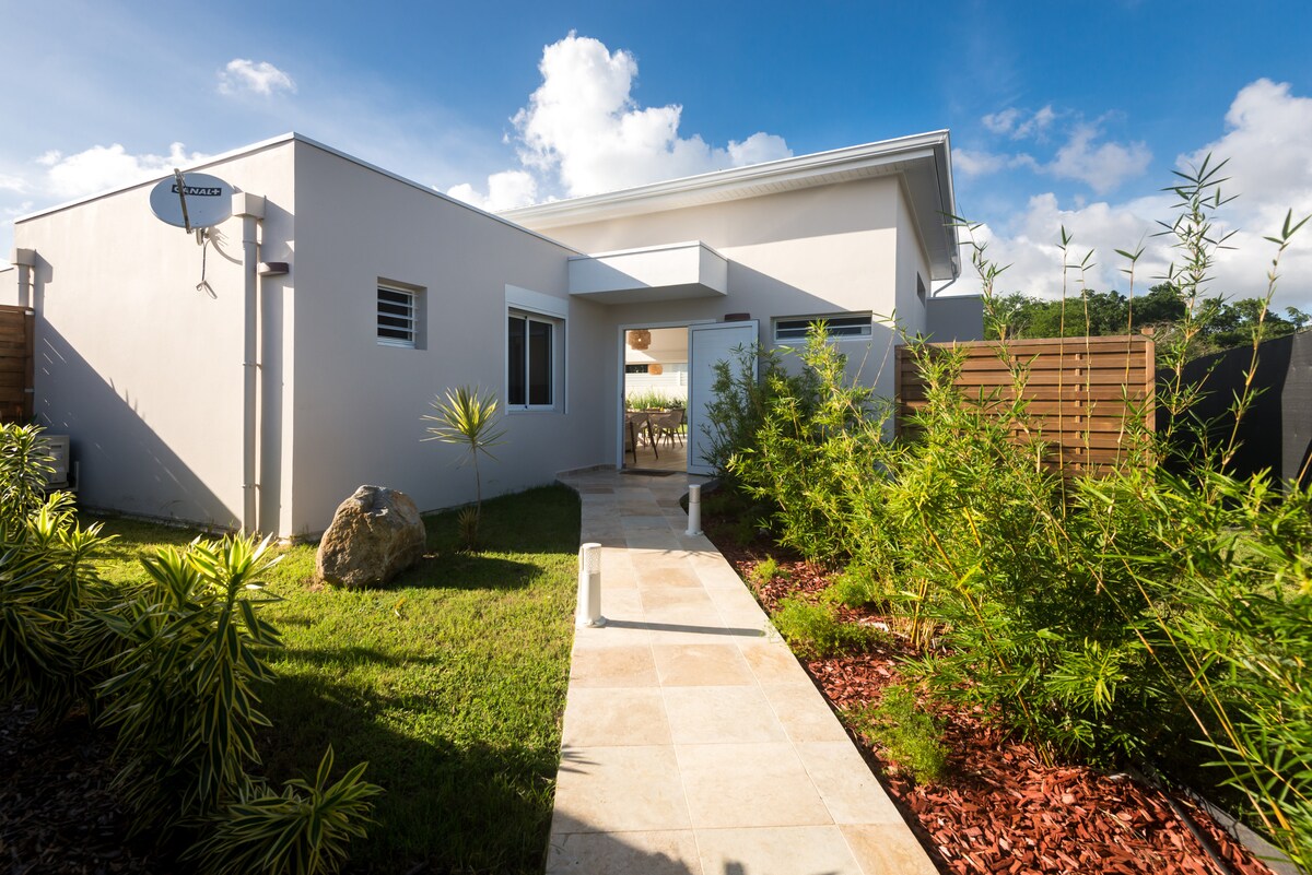 Бунгало розташоване в центрі Гваделупи. Ви можете відвідати материк і низову країну. Ми знаходимося в тихому та спокійному районі неподалік від усіх зручностей, лідера Leclerc, лідера, пекарні, пекарні, просторі, гриль-піцерії, і в 10 хвилинах їзди від пристані, де є багато ресторанів і барів. Численні пляжі в Гозьє. Пляж l anse vinaigri знаходиться поруч із будинком за три хвилини ходьби. Але в іншому випадку у вас вдома є басейн.