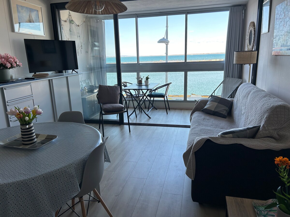 Студія з видом🏖️ на море - ідеальне місце для перебування з ногами на піску. Розташований на березі моря, тут є двоспальне ліжко 140x190 см і диван-ліжко (матрац 140x190x15 см), а також світла вітальня з балконом. У ванній кімнаті є функціональна ванна кімната та повністю обладнана кухня для легкого приготування їжі. Він розташований неподалік від усіх зручностей Грау-д 'Агде. Приходьте і насолоджуйтеся незабутнім перебуванням між морем і відпочинком ✨