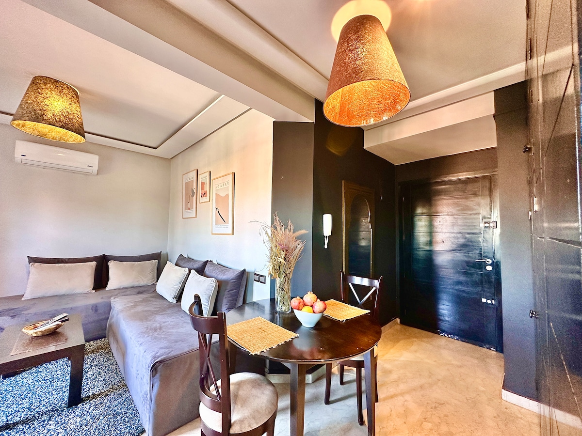 Ваші апартаменти розташовані на 2-му поверсі ріаду на вулиці Ріад-Ларусс. Ці апартаменти пропонують спальню, ванну кімнату, вітальню та обладнану кухню. Сніданок включено. За кілька хвилин від Джемаа-ель-Фна, музеїв, ресторанів і базарів, він поєднує в собі комфорт і автентичність. Ідеально підходить для відкриття медіни Марракеша, пропонує спокій, яскравість і швидкий доступ до основних культурних та історичних пам’яток міста. Ви також можете насолодитися терасою з видом на медіну.