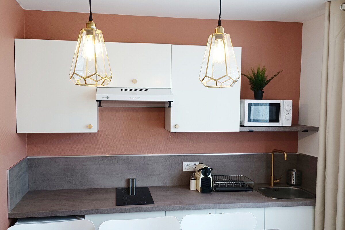 Новий, автентичний і яскравий лофт. Розташоване на поверсі старого сараю. Доступ до незалежного входу через гараж власника (приватний тупик, тихий). Можливість паркувати мотоцикли/велосипеди в гаражі (депозит 120 євро) або в глухому закутку. Помешкання складається з обладнаної кухні (включно з необхідним для приготування їжі), вітальні з диваном (телевізор для трансляції з телефону), ліжка 140 см та душової кімнати з туалетом. Прибирання та постільна білизна за додаткову плату (10 € і 5 €). Усі магазини пішки +трамвай у кінці вулиці.