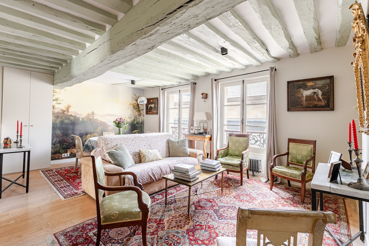 ==Лише гості з відгуками від попередніх господарів можуть забронювати цю оселю== Перебуваючи тут, ви можете відчути історію цього місця. Ця квартира для відпочинку розташована в кам 'яній будівлі XVII століття - об' єкті спадщини, розташованій на пішохідній алеї в районі Маре. Відвідувачі будуть здивовані тим, наскільки вишуканим, але сільським і повним шарму помешкання. Це дуже комфортно з усіма сучасними зручностями.