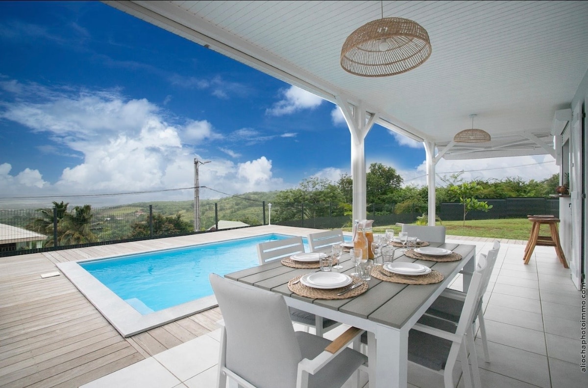 Розташований на височині Марін на Мартиніці, цей об 'єкт пропонує роскошний пейзаж, обрамлений між морем і горами.. Тут повсюдна природа має на меті запропонувати вам перебування на основі добробуту і розслаблення. Будинок був спроектований та облаштований для розміщення двох друзів, яким знадобиться спокій та роз 'єднання. Простори зручні та ретельно оздоблені з увагою до деталей, створюючи шикарну та витончену атмосферу. Ідеально підходить для пари наодинці або з дітьми.