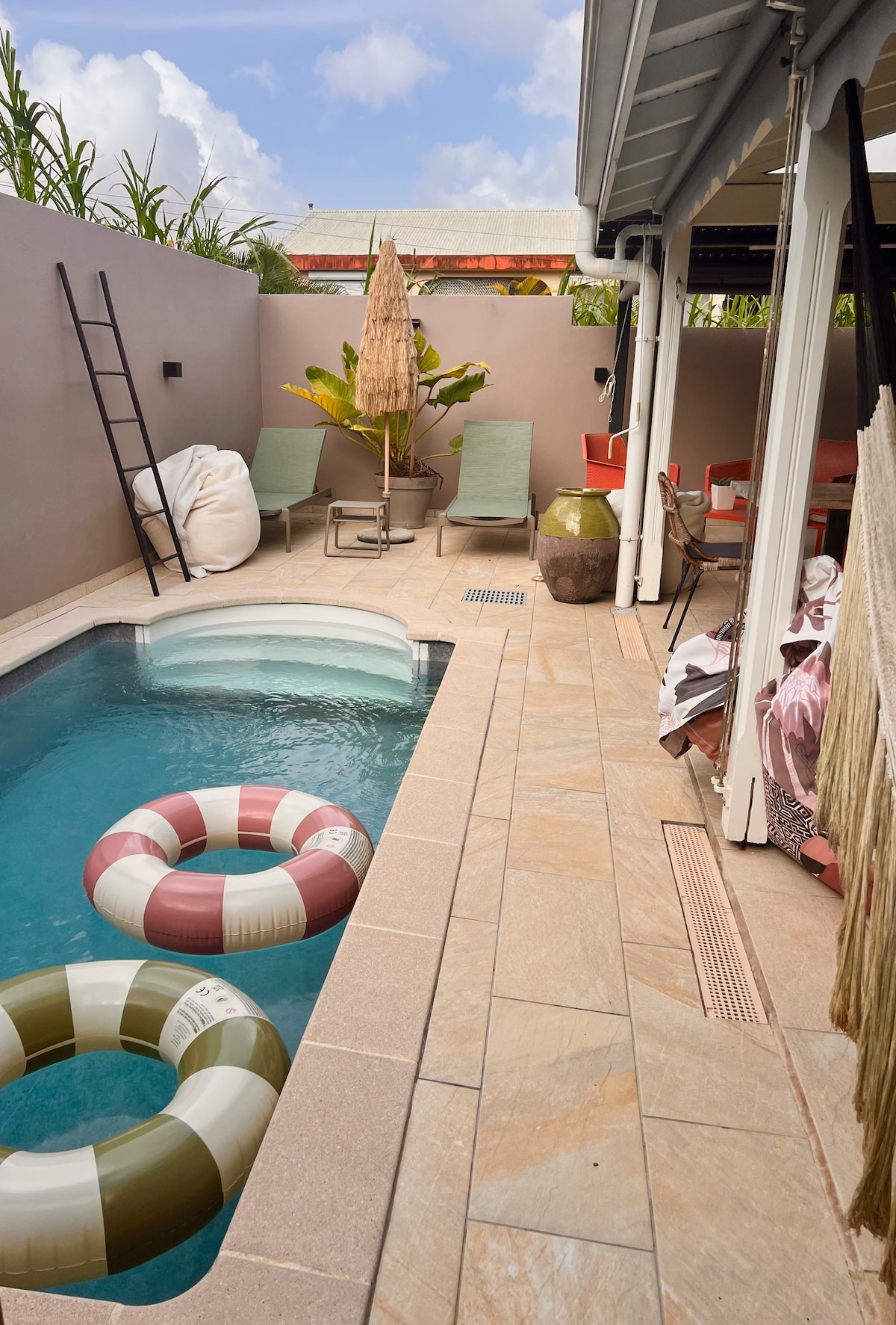 Подаруйте собі оздоровчий відпочинок у цьому затишному осередку для відпочинку. Ласкаво просимо до стильного та повністю обладнаного помешкання, де ви зможете повністю розслабитися. Тут все запрошує вас відпочити: приватний басейн, розслаблююча сауна, душ на відкритому повітрі, затінений гамак для ідеального сну... Ця адреса розташована в дружньому та безпечному будинку з двома квартирами і є ідеальним місцем для романтичного відпочинку, перебування з друзями або сімейного відпочинку.