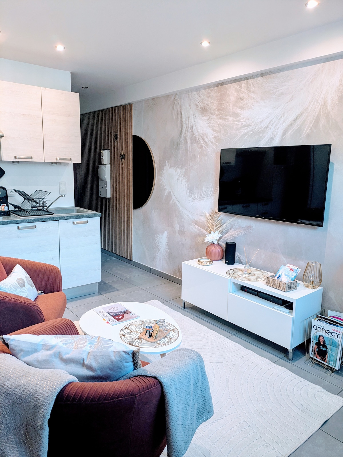 Спростіть своє життя в цій затишній оселі в центрі міста. Повністю відремонтована студія, повний центр Аннесі 2 хвилини від озера Квартира розташована поруч з paquier в Аннесі та перед Bonlieu (туристичний офіс,бібліотека, театр ) Велосипедна доріжка внизу квартири, а також автобуси 5 хвилин від кур 'єрського центру Старе місто за 5 хвилин